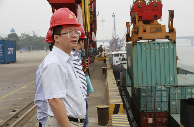 會(huì )前,調研領(lǐng)導對長(cháng)沙港集裝箱碼頭及件雜散貨碼頭進(jìn)行了實(shí)地考察。