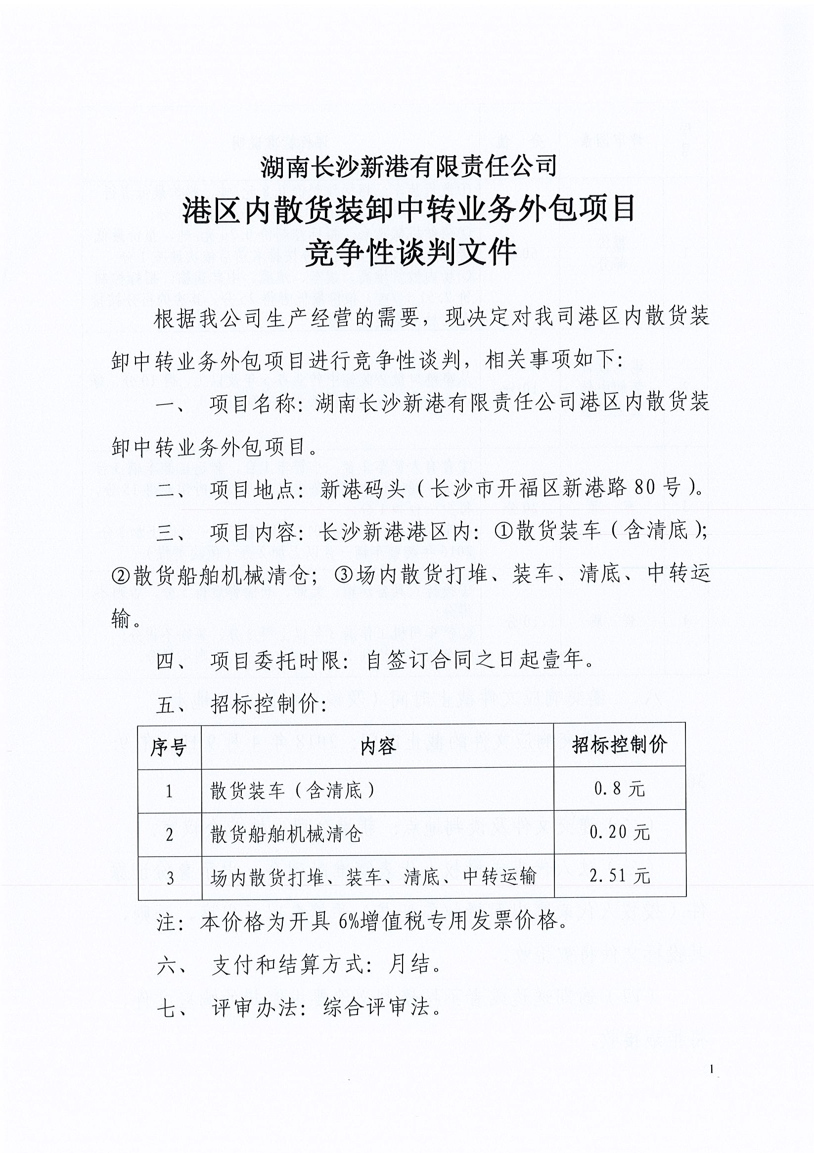 湖南長(cháng)沙新港有限責任公司 港區內散貨裝卸中轉業(yè)務(wù)外包項目競爭性談判邀請公告