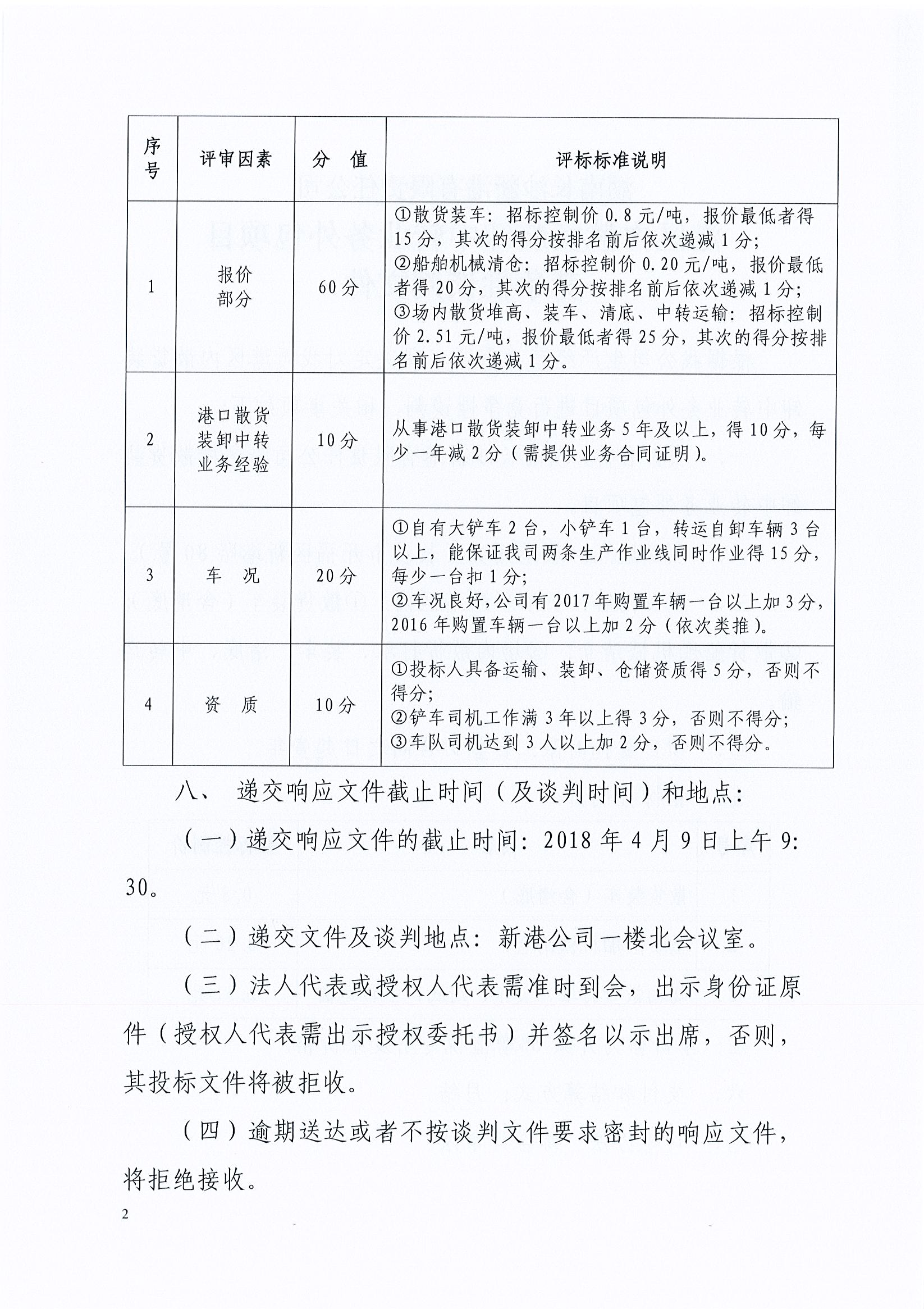 我公司決定對港區內散貨裝卸中轉業(yè)務(wù)外包項目按照一般競爭性談判方式選擇外包單位,歡迎符合條件的單位參與項目的競爭談判。