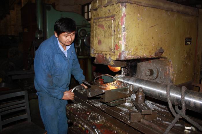 楊建安同志從來(lái)都是碰到越有難度的加工活,他越有興趣,越喜歡從中摸索,敢于接受任何技術(shù)上的挑戰,這次也不例外。通過(guò)對需維修設備的了解和初步分析,他想出了最簡(jiǎn)單、最快捷的拆裝方法,用最短的時(shí)間將已經(jīng)斷裂的傳動(dòng)軸拆除了出來(lái)。他充足的干勁、熟練的操作都感染著(zhù)在場(chǎng)所有的人。只見(jiàn)他認真地挑選好材料毛坯,細致地磨好所需刀具,一絲不茍、聚精會(huì )神,干起活來(lái)。在他的精心操作下,經(jīng)過(guò)兩個(gè)多小時(shí)搶制,新的傳動(dòng)軸加工出來(lái)了,且規格和標準都符合裝配要求,在場(chǎng)的所有人才放心地松了口氣。