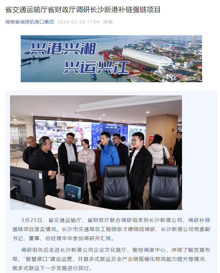 省交通運輸廳省財政廳調研長(cháng)沙新港補鏈強鏈項目