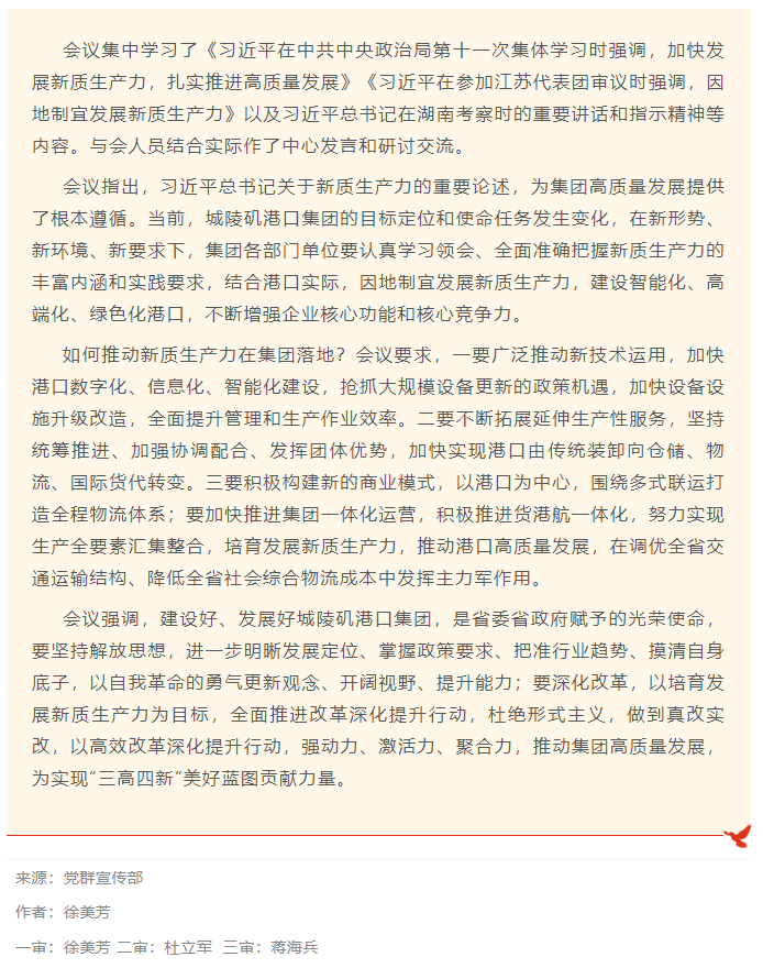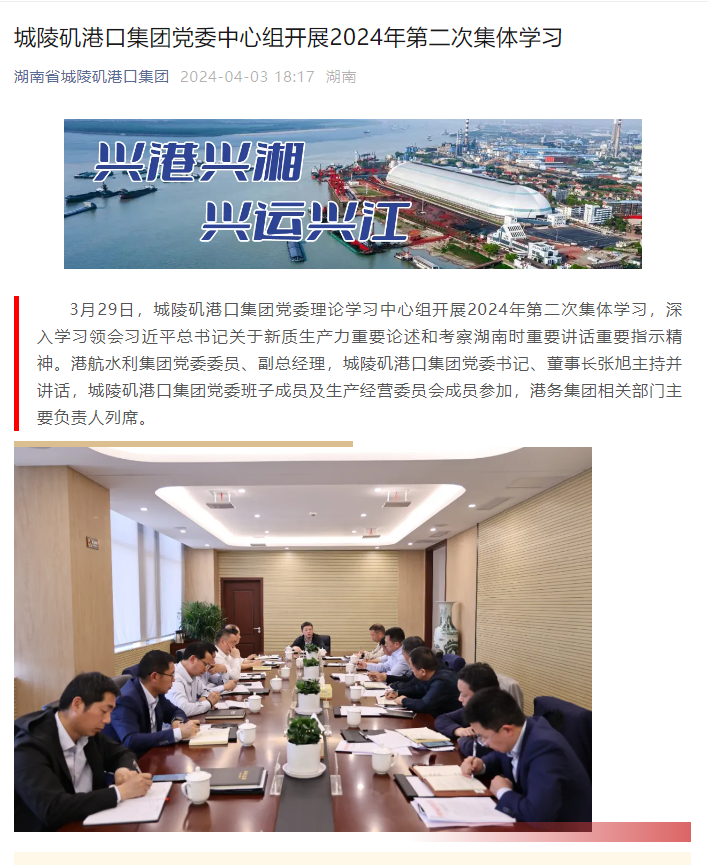城陵磯港口集團黨委中心組開(kāi)展2024年第二次集體學(xué)習