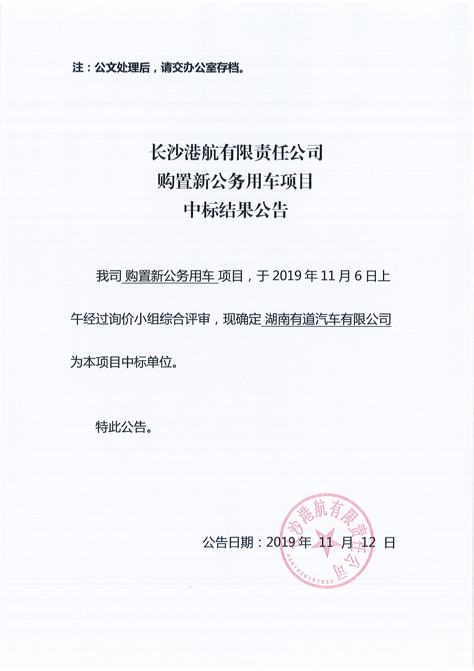 長(cháng)沙港航有限責任公司購置新公務(wù)用車(chē)項目中標結果公告