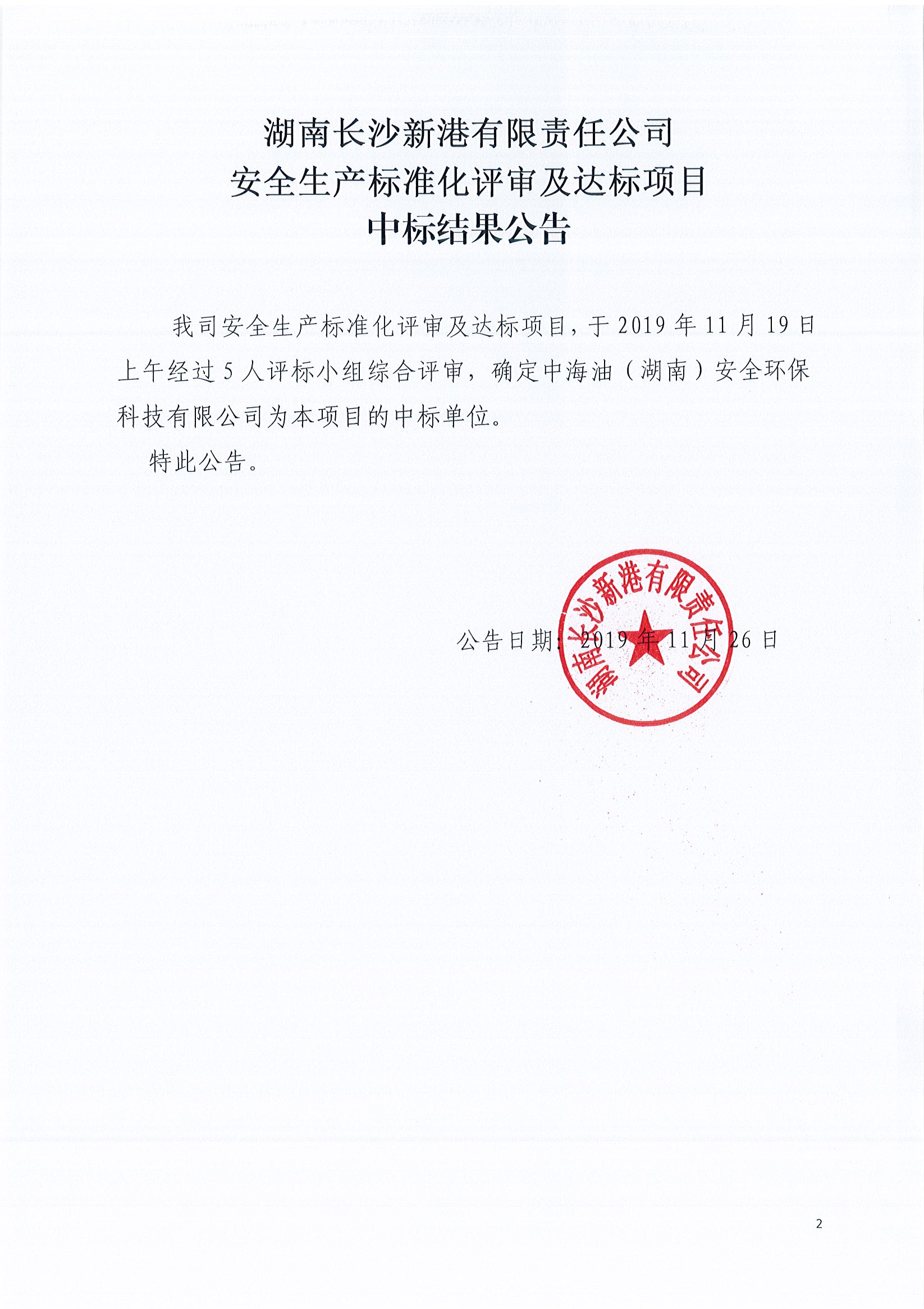 安全生產(chǎn)標準化評審及達標項目中標結果公告
