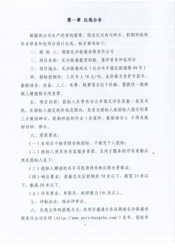 比選公告:長(cháng)沙新港散貨卸船、落坪勞務(wù)外包項目