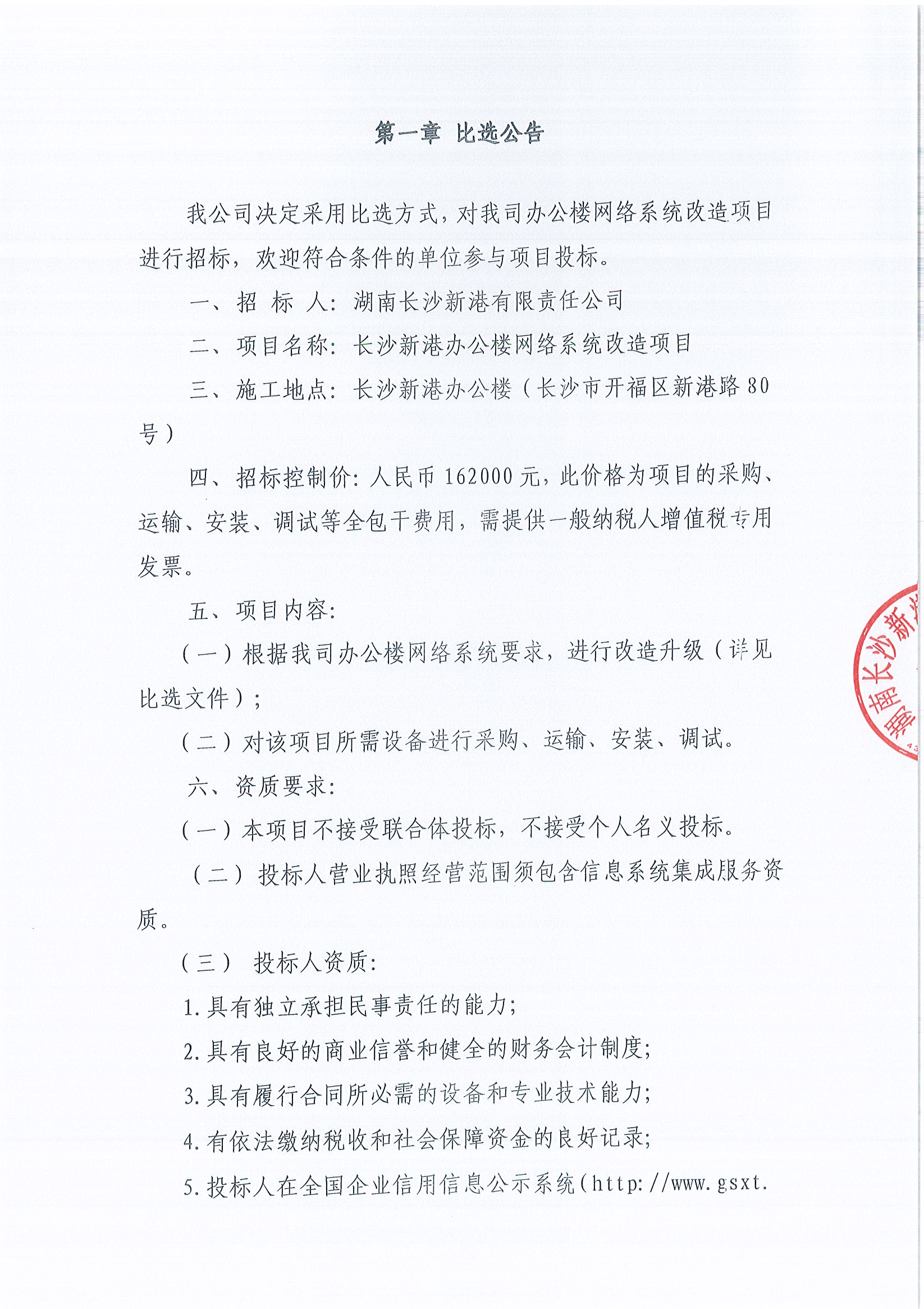 湖南長(cháng)沙新港有限責任公司辦公樓網(wǎng)絡(luò )系統改造項目招標公示