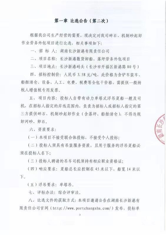散貨卸船/落坪勞務(wù)外包項目的比選公告