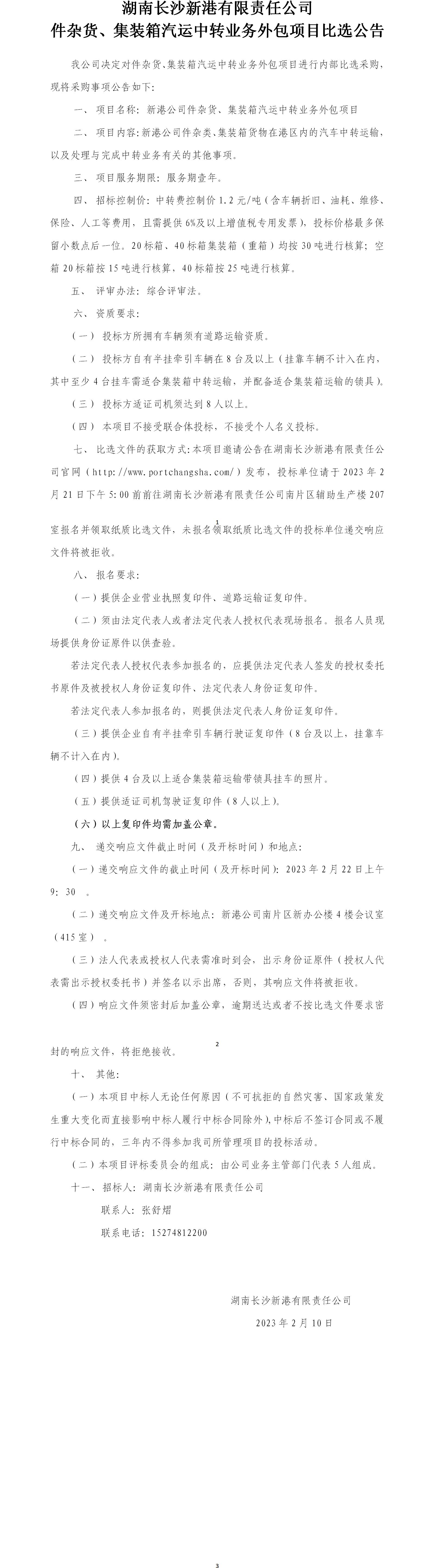件雜貨、集裝箱汽運中轉業(yè)務(wù)外包項目比選公告