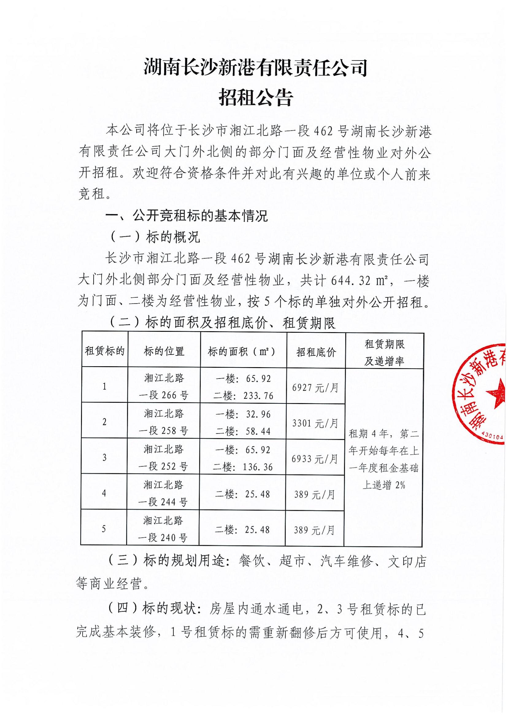 湖南長(cháng)沙新港有限責任公司招租公告