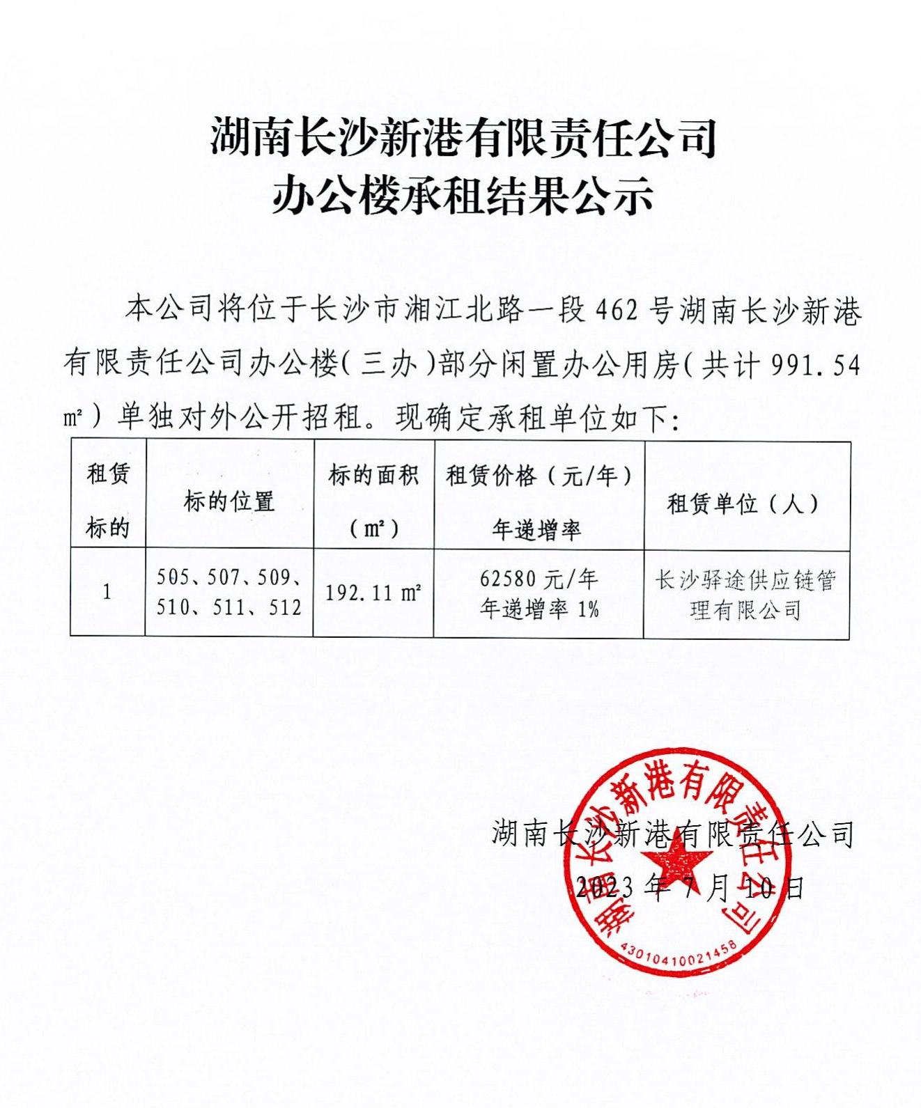 湖南長(cháng)沙新港有限責任公司辦公樓承租結果公示