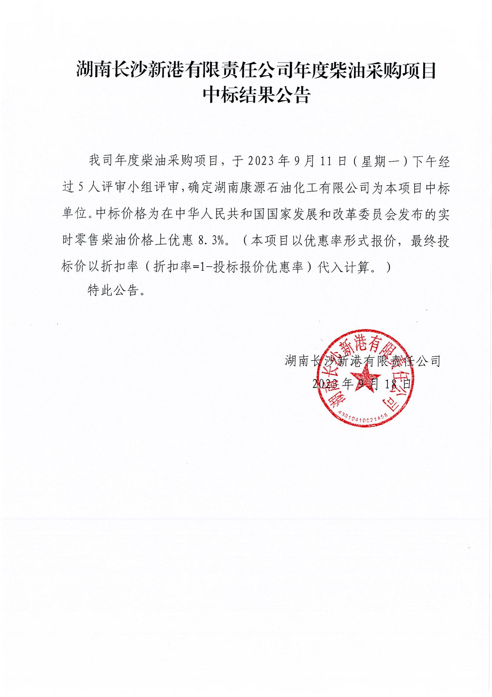湖南長(cháng)沙新港有限責任公司年度柴油項目中標結果公告