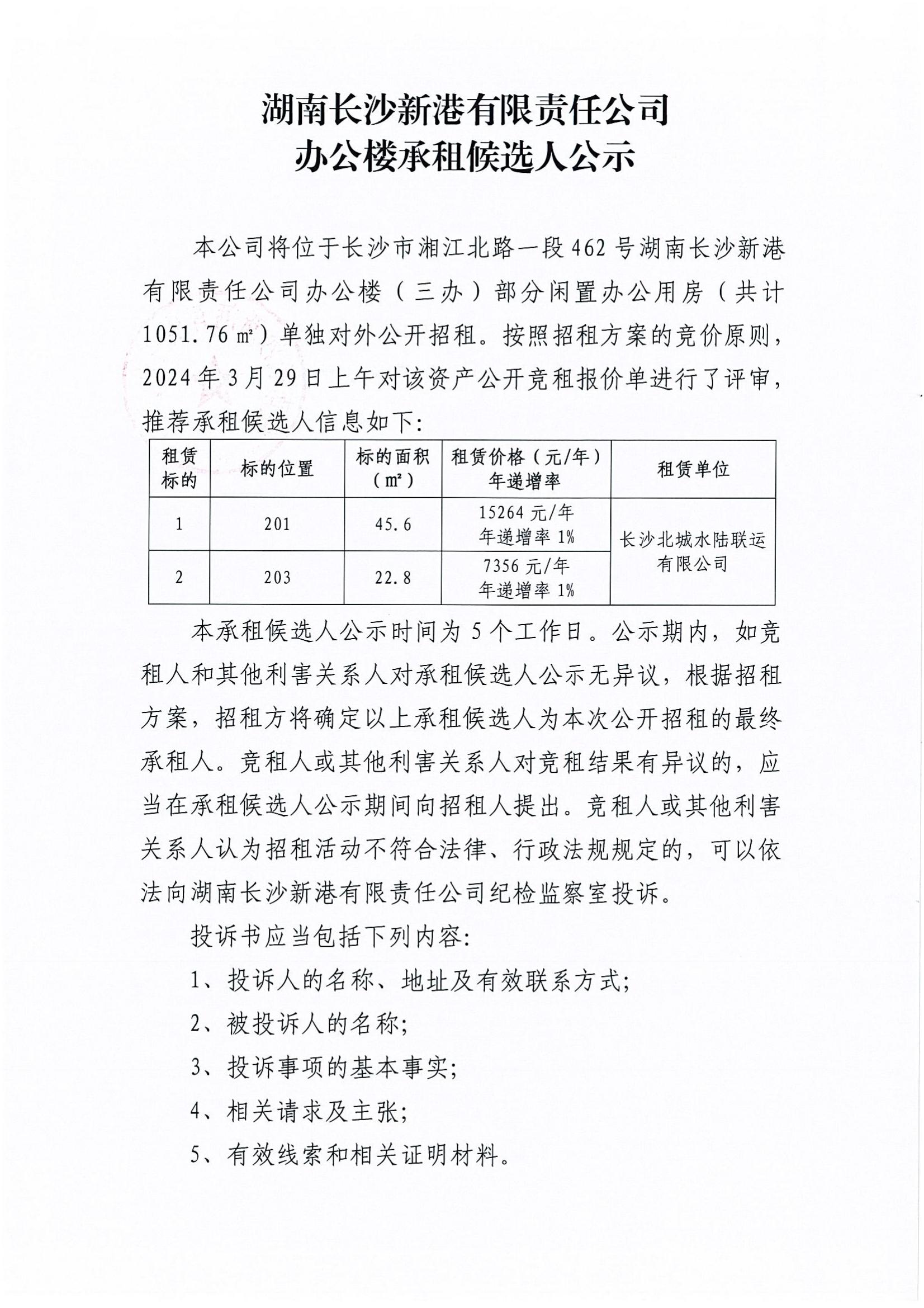湖南長(cháng)沙新港有限責任公司辦公樓承租候選人公示(201/203)