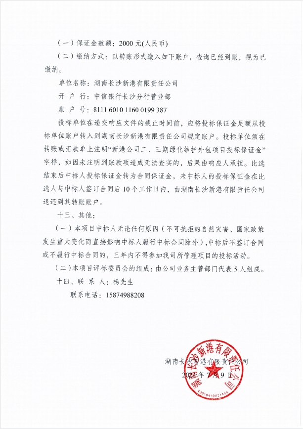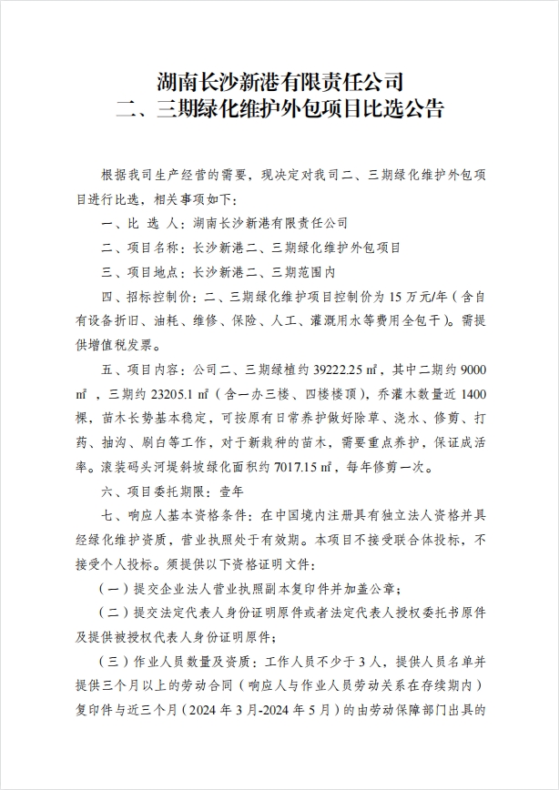 湖南長(cháng)沙新港有限責任公司二、三期綠化維護外包項目比選公告